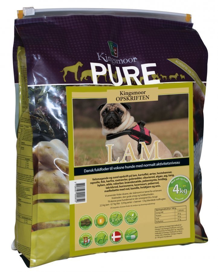 Pure Lammas on viljaton, gluteeniton ja hypoallergeeninen ruoka aktiviteettitasoltaan normaaleille täysikasvuisille koirille. 4 kg pussit sisältävät pienempiä nappuloita, joita pienikokoistenkin rotujen koirien on helppo syödä.