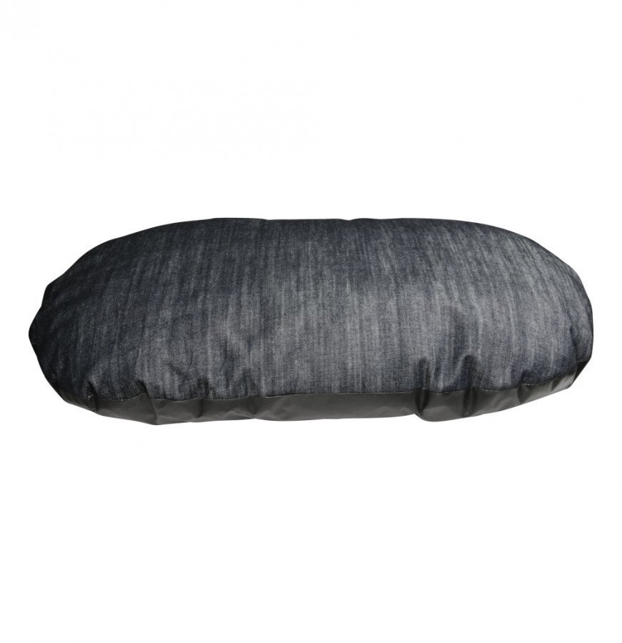 Soikeanmuotoinen Denim Koiranpeti. Koko 60 x 80 cm. Väri harmaa.